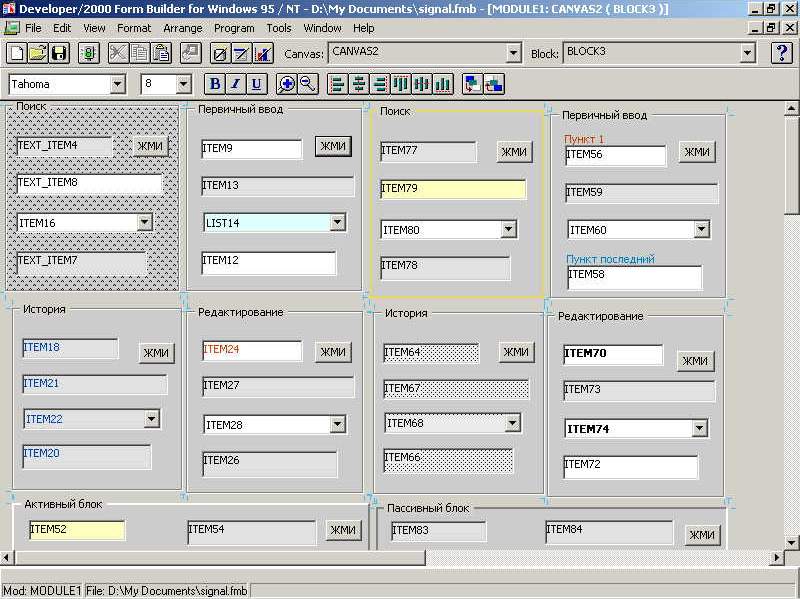 Разработка форм осуществялась с помощью стандартной библиотеки компонет Developer 2000 под Oracle.Варианты сигнализации режимов работы, возможные для реализации