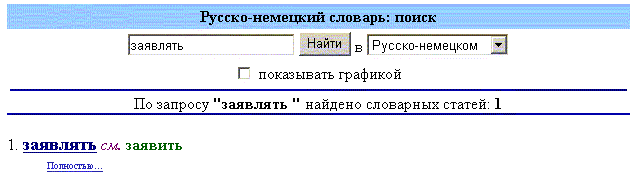 Когда вы напротив искомого в обычном, бумажном, словаре слова видите надпись см. <другое слово>, поделать тут ничего нельзя – ищите снова, так как такие ссылки сделаны с целью уменьшения объема словаря. Интернет же – идеальная среда для ссылок, и в приведенном примере 99% пользователей в данной ситуации попытаются нажать на слово заявить, чтобы найти его перевод, и будут разочарованы – это НЕ ссылка. Поэтому чтобы все-таки добраться до перевода, пользователю придется исправить первое слово, или воспользоваться буфером обмена и скопировать второе, после чего снова нажать Найти. И не забыть сказать разработчикам «Спасибо» за заботу о нём.