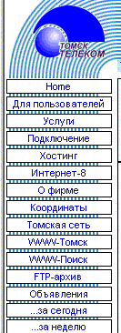Монополисты и usability У любой фирмы, имеющей конкурентов, значительно больше шансов прийти к пониманию необходимости применения специальных методов увеличения удобства использования их продуктов, в том числе и web-сайта самой фирмы. С компаниями-монополистами дело обстоит гораздо хуже. Они и пальцем не пошевелят, чтобы сделать свои услуги более доступными. Совершенно реальный и типичный пример такого подхода - web-сайт провайдера сети Интернет в г.Томске - организации под названием ТомскТелеком. Театр начинается с вешалки, а web-сайт с главного меню. Любой посетитель приходит на сайт не просто так, а с определенной целью, чаще всего для того чтобы найти некую нужную ему информацию. Первый путеводитель по сайту в этом деле - главное меню. Поэтому в данном случае одного анализа меню вполне достаточно, чтобы понять что сайт не рассчитан на пользователей. Во-первых меню сайта имеет довольно типичную структуру под названием "все свалили в одну кучу", т.е. не имеет ни какой структуры. А во-вторых оно представляет собой сплошную головоломку. Разберем пункты по отдельности: